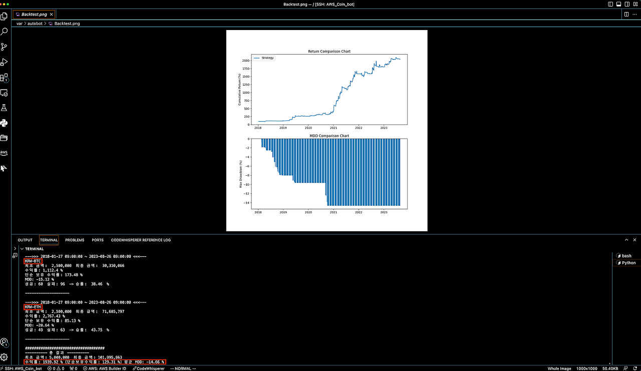 주말이라 주식은 휴장인 관계로 가상화폐 백테스트 및 매매결과만 게재